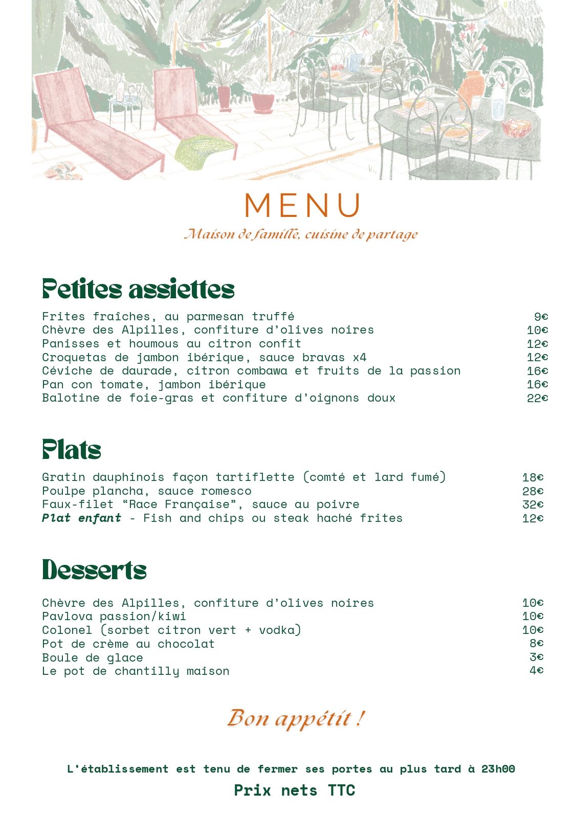 Petites assiettes à picorer, produits de la mer, belles viandes et plats généreux composent une carte simple et conviviale, pensée pour se retrouver autour de la table, du début jusqu’au dessert.